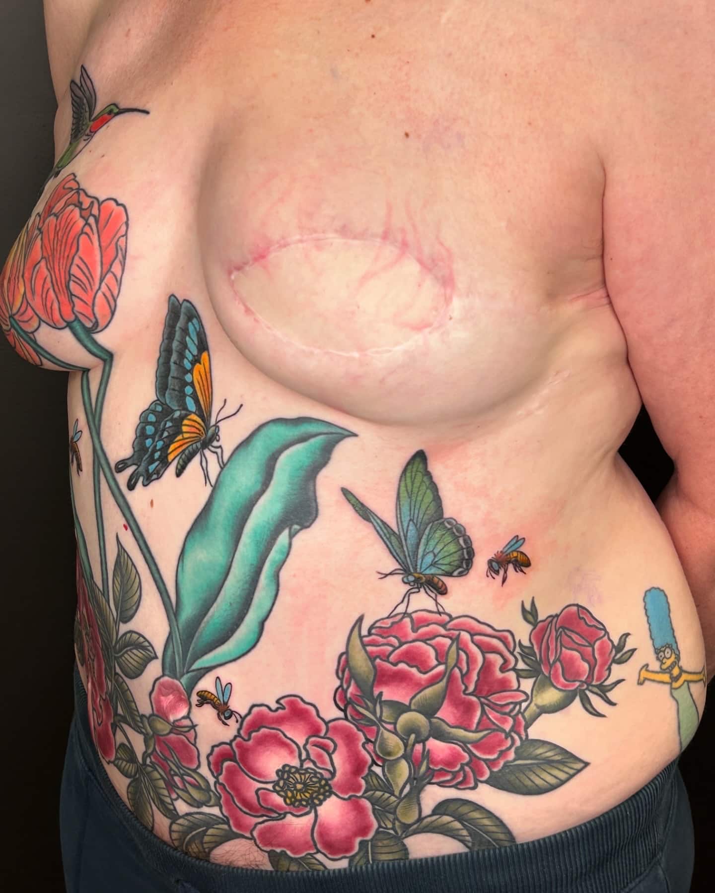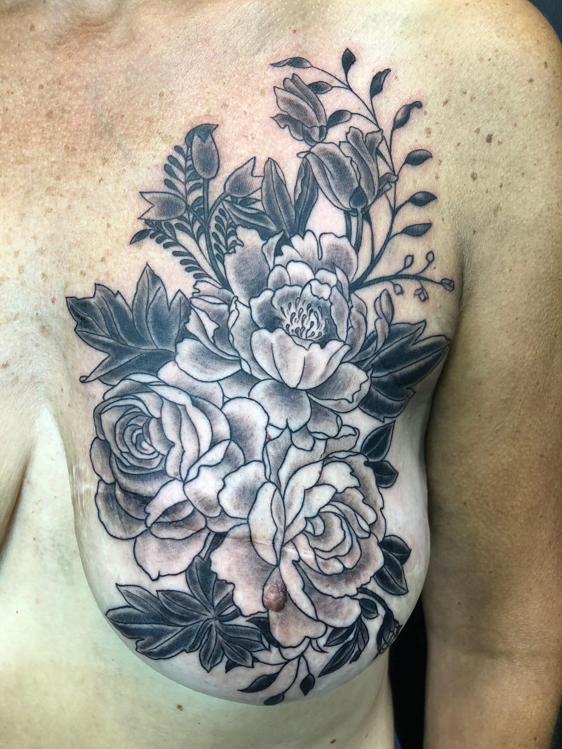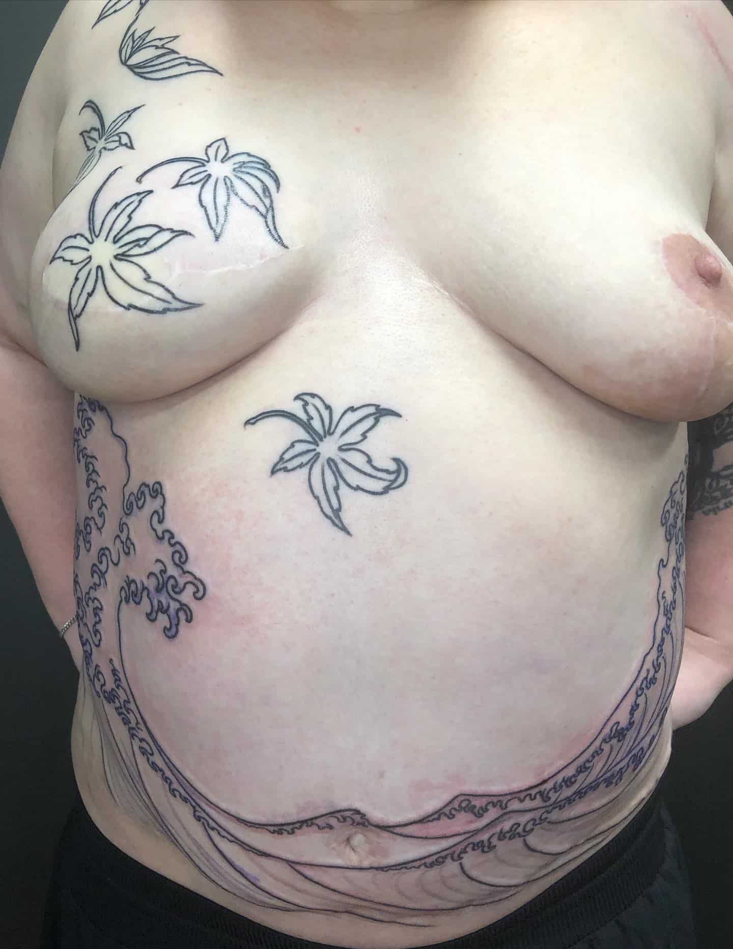 Viewing my gallery is an important step in deciding if I’m the right artist for you. It showcases my work on post-mastectomy tattoos, giving you a sense of my style and experience with scarred or sensitive skin. These images are here to inspire and reassure you that together, we can create something truly meaningful and beautiful.